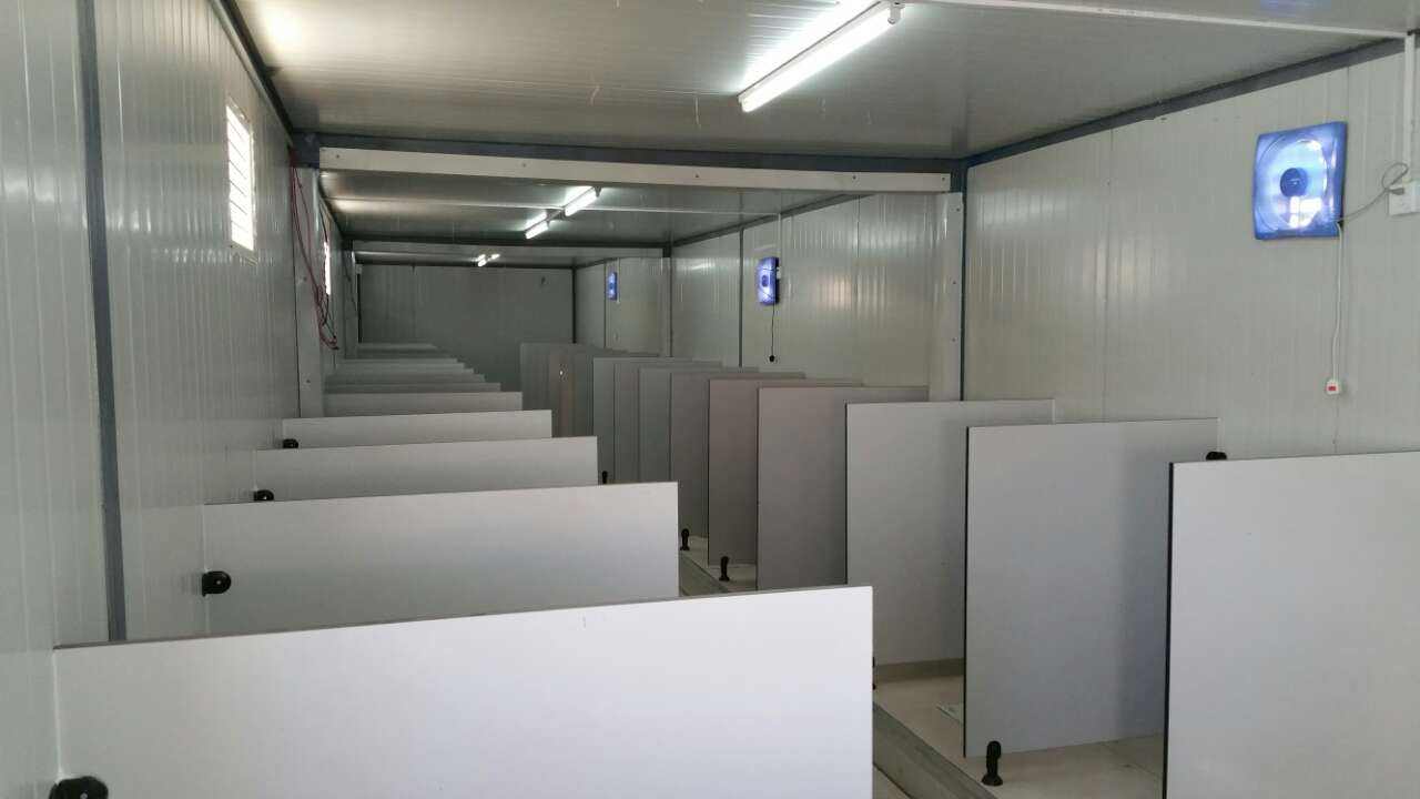 集裝箱房廁所內(nèi)部可以自由進(jìn)行隔斷,可以根據(jù)您自己的需求隔斷出獨(dú)立的衛(wèi)生間,這款活動(dòng)房可以按需求定制,臥室?guī)И?dú)立衛(wèi)生間,集裝箱衛(wèi)生間隔斷在中間然后兩邊是獨(dú)立的臥室,也可以更具需求把衛(wèi)生間隔斷在一側(cè)。這款集裝箱活動(dòng)房的結(jié)構(gòu)都是由螺栓連接而成的,安裝和拆卸都是極為方便的。一般4個(gè)人1個(gè)小時(shí)內(nèi)即可安裝或者拆卸完成。對(duì)于安裝,我們可以提供視頻。也可以安排安裝人員外出,滿足客戶的安裝需求,或者工程師義務(wù)進(jìn)行現(xiàn)場指導(dǎo)??傊惭b快捷方便。一、出租出售集裝箱活動(dòng)房制造廠家直銷-八人住集裝箱活動(dòng)房