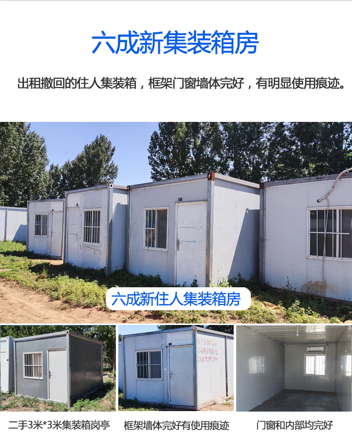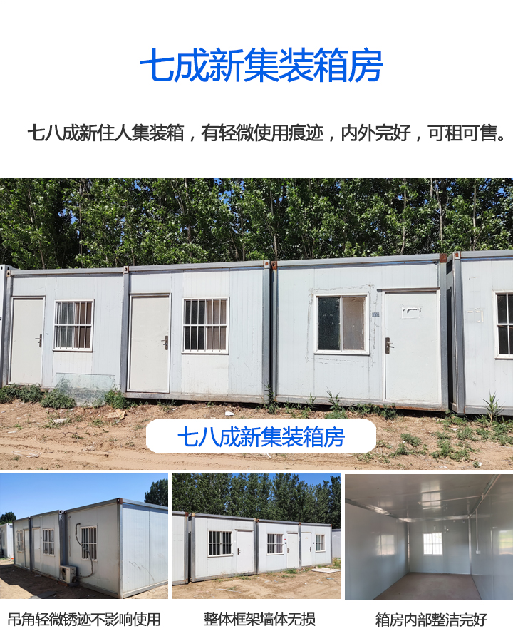 二手集裝箱房北京二手集裝箱房二手集裝箱房九成新二手工地打包箱房二手集裝箱房八成新二手住人集裝箱二手集裝箱房七成新二手住人集裝箱,有輕微使用痕跡,整體完好。二手集裝箱房六成新二手集裝箱房,結(jié)構(gòu)完好,有明顯使用痕跡。二手集裝箱房產(chǎn)品優(yōu)勢,全鋼框架,50mm巖棉保溫墻板二手集裝箱房優(yōu)勢對比二手集裝箱房材料優(yōu)質(zhì),專為工程項目臨建房定制二手集裝箱房專業(yè)安裝團隊,運輸,安裝一站式服務二手集裝箱房多家合作伙伴二手集裝箱房源頭廠家,可租可售,簽訂正規(guī)銷售合同